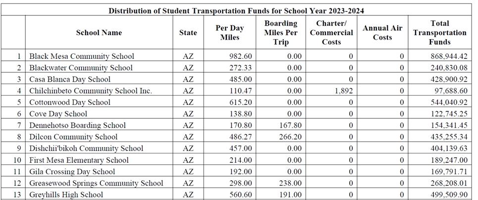 Distribution of SY 2023 -2024 Transportation Funds